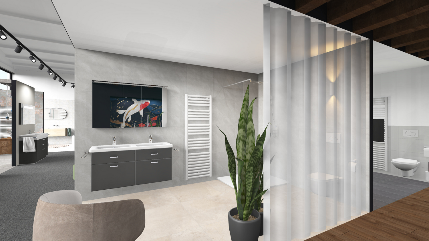 Egal, ob du einen Beratungsraum mit begrenztem Platzangebot, einen exklusiven Flagshipstore oder eine großflächige Badausstellung planst – wir unterstützen dich dabei, deine Visionen zu verwirklichen und deine Ausstellung fit für die Zukunft zu machen.